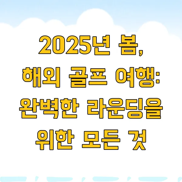 2025년 봄, 해외 골프 여행은 잊지 못할 경험을 선사할 것입니다. 철저한 준비와 계획을 통해, 최고의 라운딩과 휴식을 만끽하시길 바랍니다.