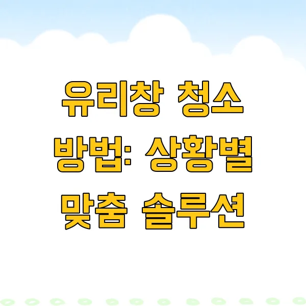 유리창 청소는 오염 정도와 상황에 따라 다양한 방법으로 접근할 수 있습니다. 다음은 상황별 맞춤 청소 방법입니다.