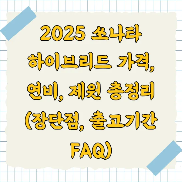 연비 끝판왕! 쏘나타 하이브리드! 경제적인 유류비와 뛰어난 성능, 두 마리 토끼를 모두 잡고 싶으신가요? 그렇다면 2025년형 쏘나타 하이브리드 가 정답입니다. 가격, 연비, 제원부터 장단점, 출고 기간, FAQ까지! 지금 바로 확인하세요! 쏘나타 하이브리드, K5 하이브리드, 캠리 하이브리드 등 경쟁 차종과의 비교 분석까지! 현명한 선택을 위한 모든 정보가 여기에 있습니다.