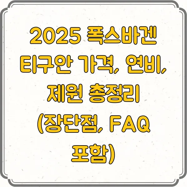 2025 폭스바겐 티구안 가격, 연비, 제원 총정리 (장단점, FAQ 포함)