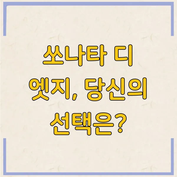 실제 오너들의 생생한 후기를 통해 쏘나타 디 엣지의 진짜 매력을 파헤쳐 봅시다. 장점과 단점을 객관적으로 분석하여 구매 결정에 도움을 드립니다.