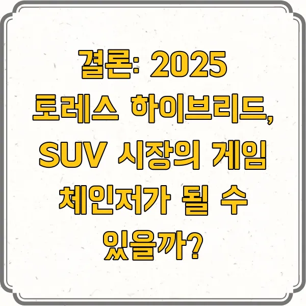 결론: 2025 토레스 하이브리드, SUV 시장의 게임 체인저가 될 수 있을까?