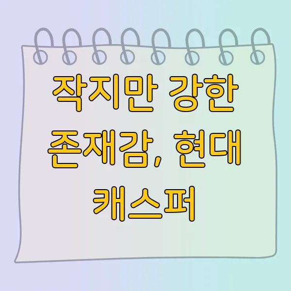 경차 시장의 판도를 뒤흔든 게임 체인저, 현대 캐스퍼! 귀여운 외모에 실용성까지 겸비한 매력으로 2021년 출시 이후 꾸준한 인기를 누리고 있습니다. 혼자 타는 첫 차로도, 도심 속 출퇴근용 차량으로도, 실용적인 업무용 밴으로도 완벽 변신! 캐스퍼의 매력, 지금부터 속속들이 파헤쳐 보겠습니다.