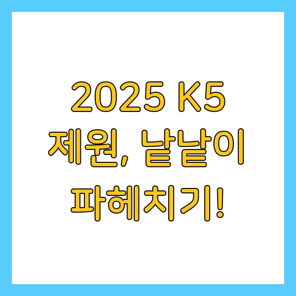 2025 K5는 스타일, 성능, 경제성, 안전까지 모든 것을 갖춘 완벽한 중형 세단입니다. 지금 바로 K5를 만나보고, 당신의 드라이빙을 한 단계 업그레이드하세요!