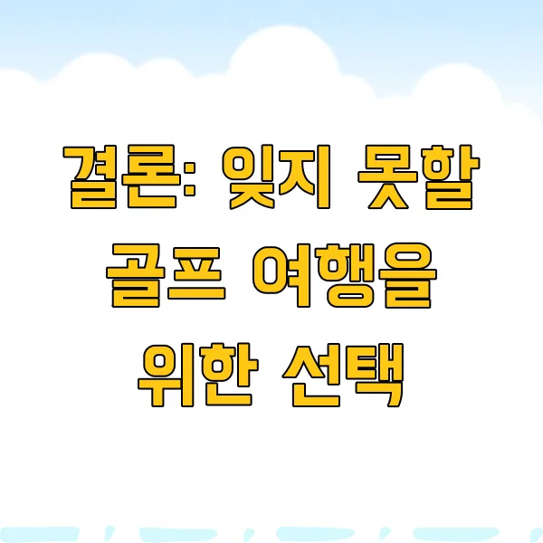 동남아시아는 골프 여행지로서 무궁무진한 매력을 지니고 있습니다. 태국 푸켓, 베트남 다낭, 말레이시아 쿠알라룸푸르, 인도네시아 발리, 필리핀 세부는 각기 다른 매력을 가지고 있으며, 골프와 함께 휴식, 문화, 자연을 만끽할 수 있는 최적의 장소들입니다. 2025년, 이 지역들을 방문하여 멋진 골프 라운딩과 함께 잊지 못할 여행을 경험해 보시길 바랍니다.